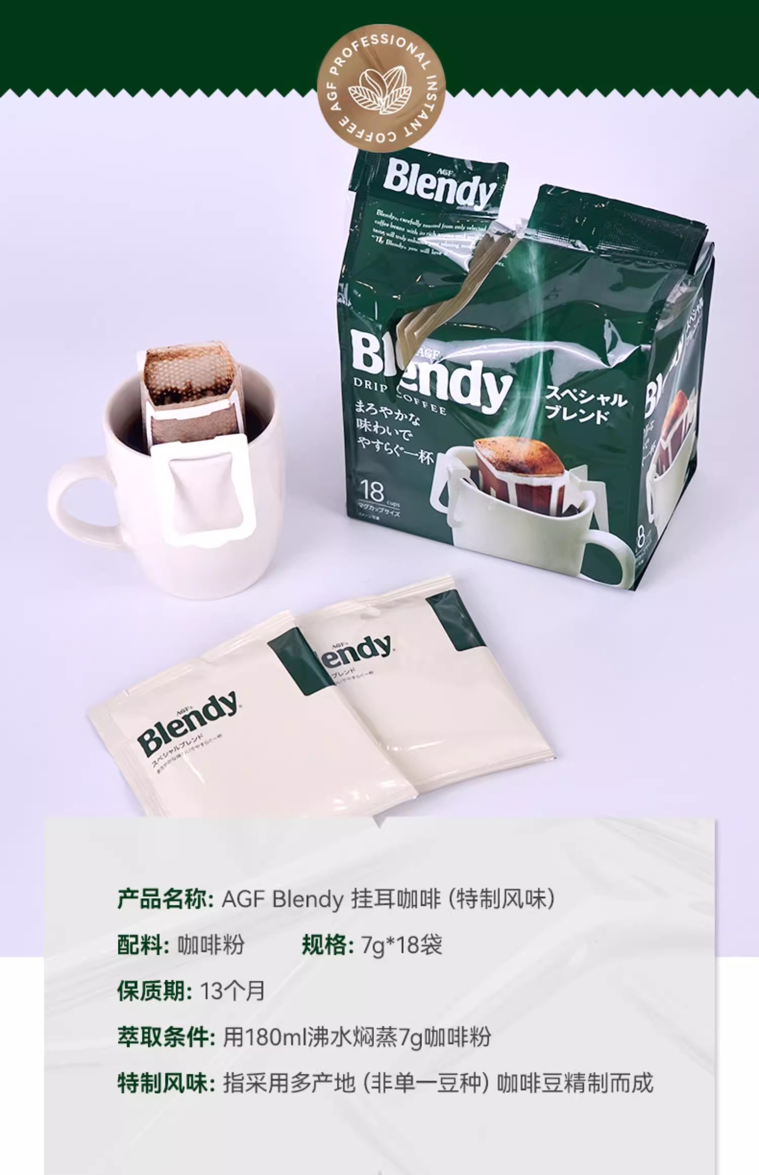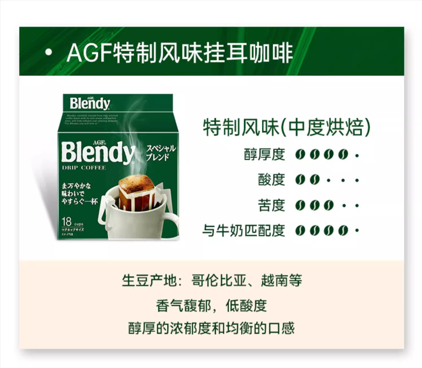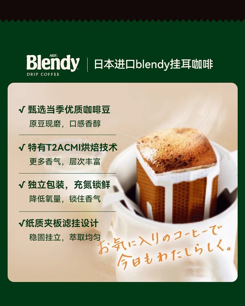 日本AGF Blendy挂耳咖啡滤挂式精品手冲速溶黑咖啡粉