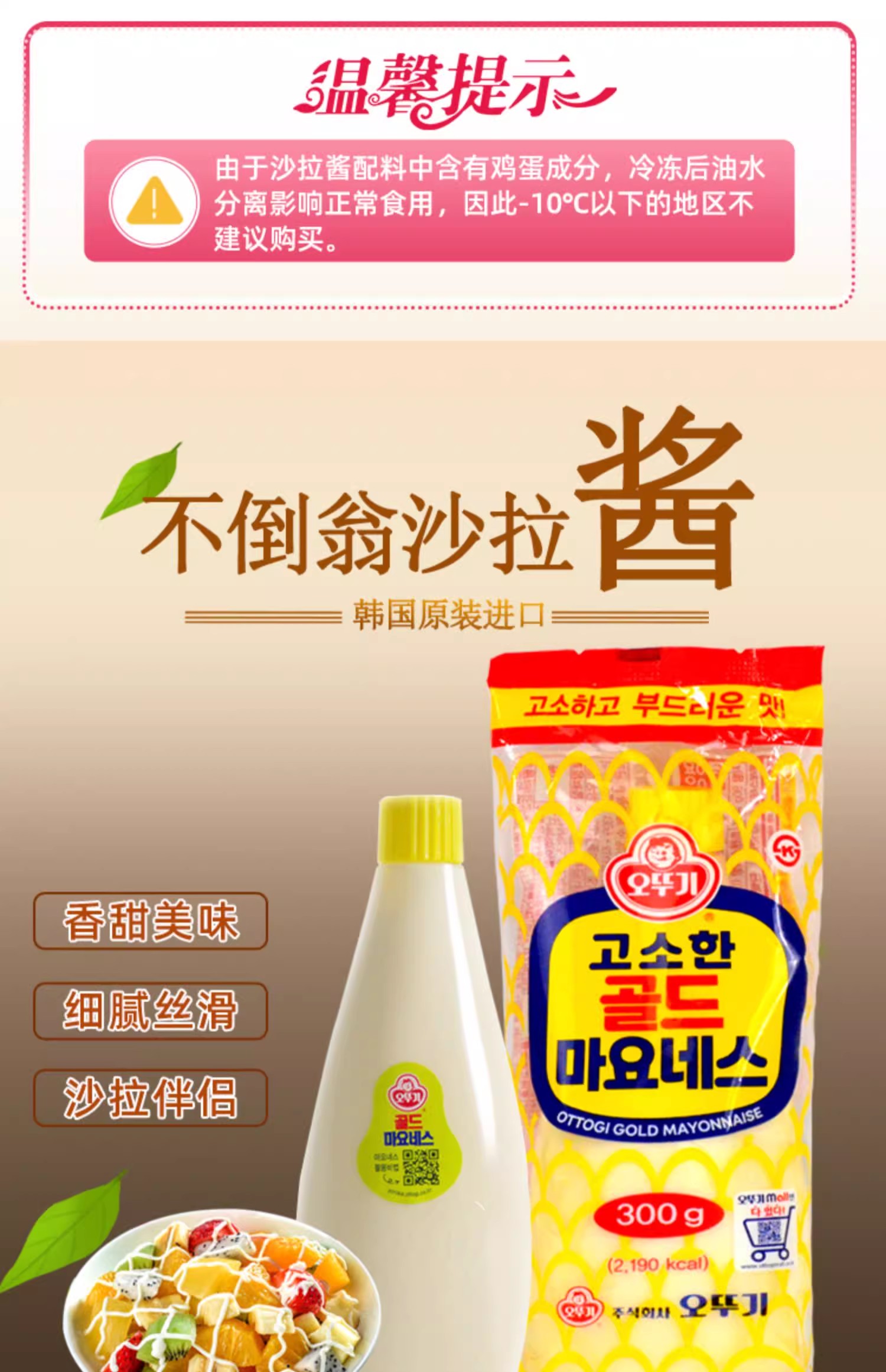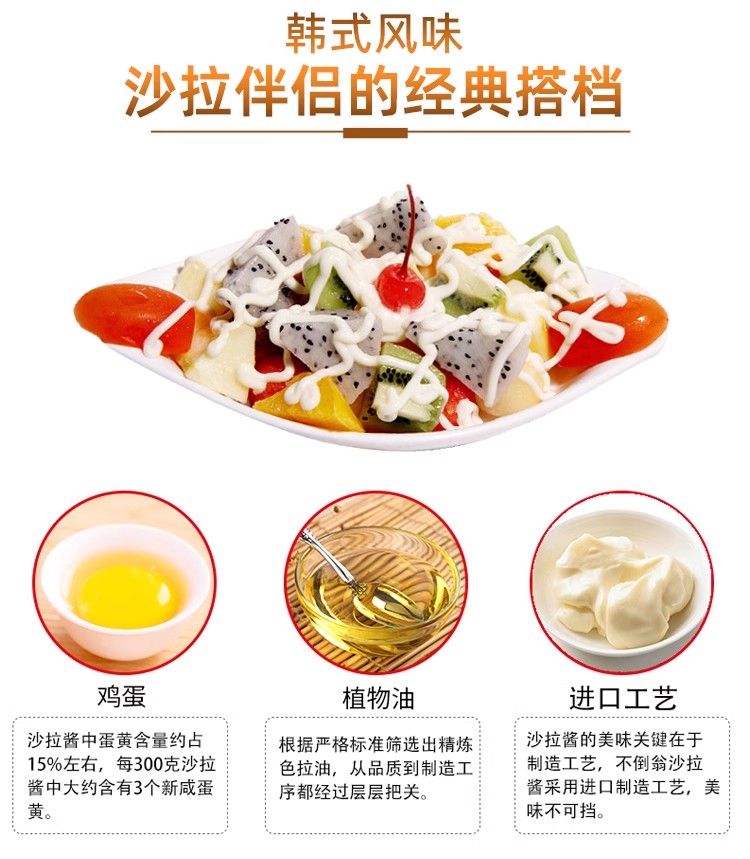 韩国不倒翁水果沙拉酱蔬菜原味韩式沙拉酱300g*3袋