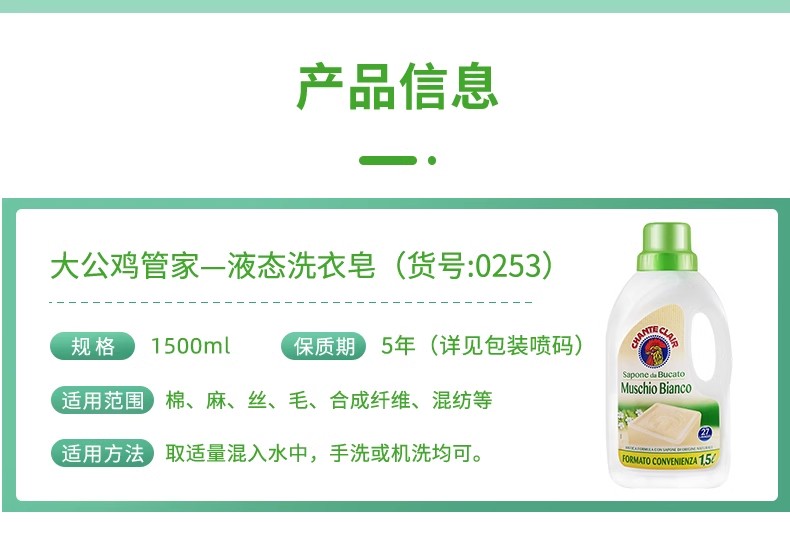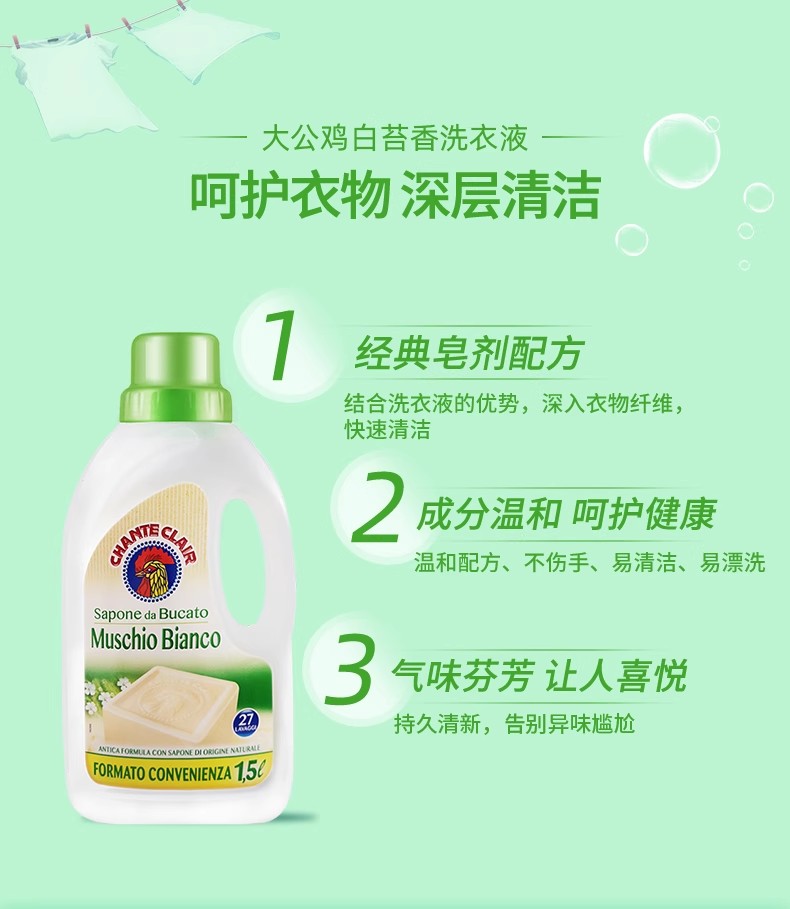 大公鸡洗衣液衣物去渍皂液1.5L*4桶