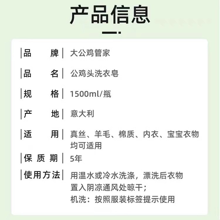 大公鸡除菌除螨液态洗衣皂1.5L*4桶