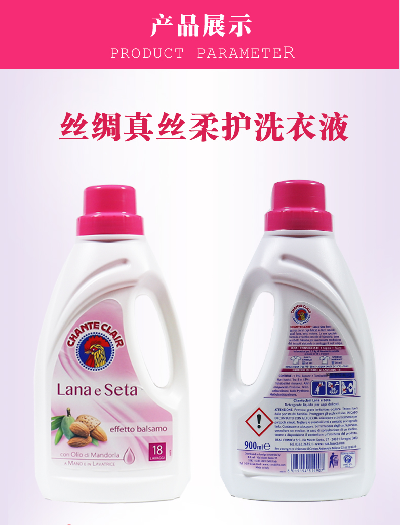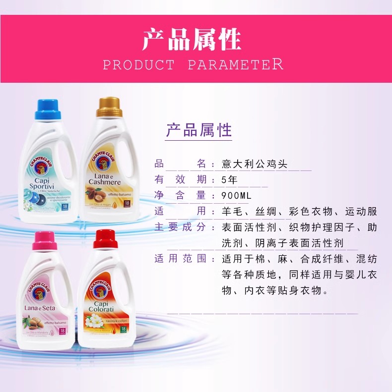 意大利大公鸡羊毛衫/护色亮彩/丝绸真丝/运动服洗衣液900ml*4桶