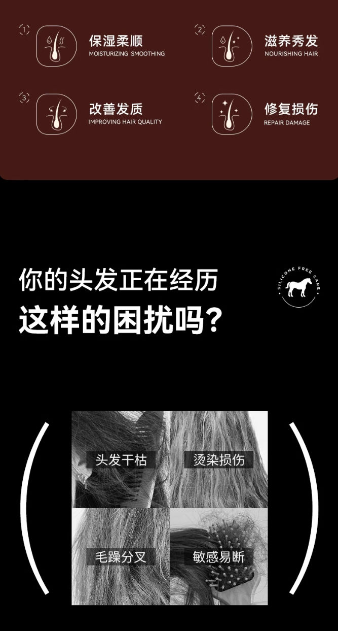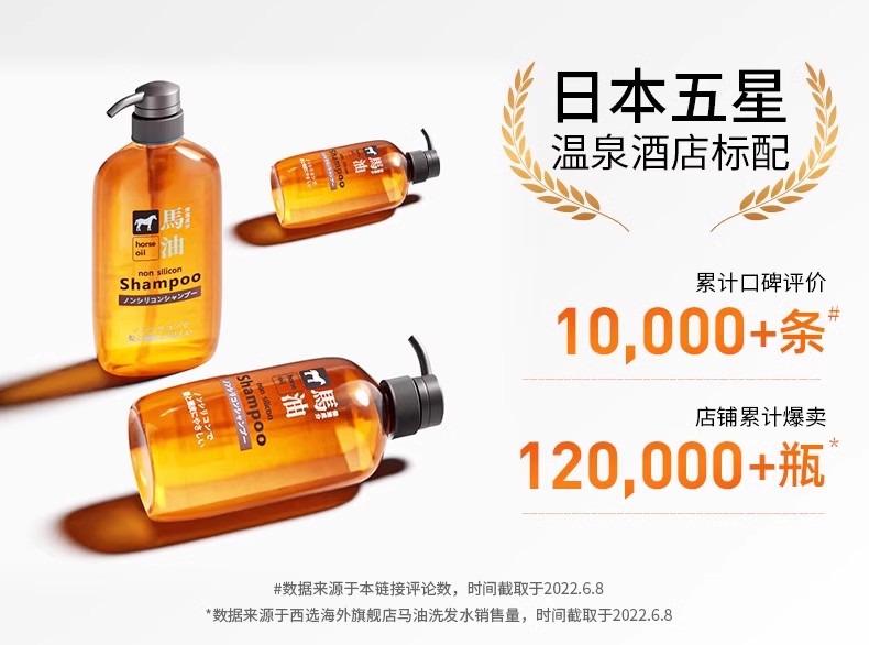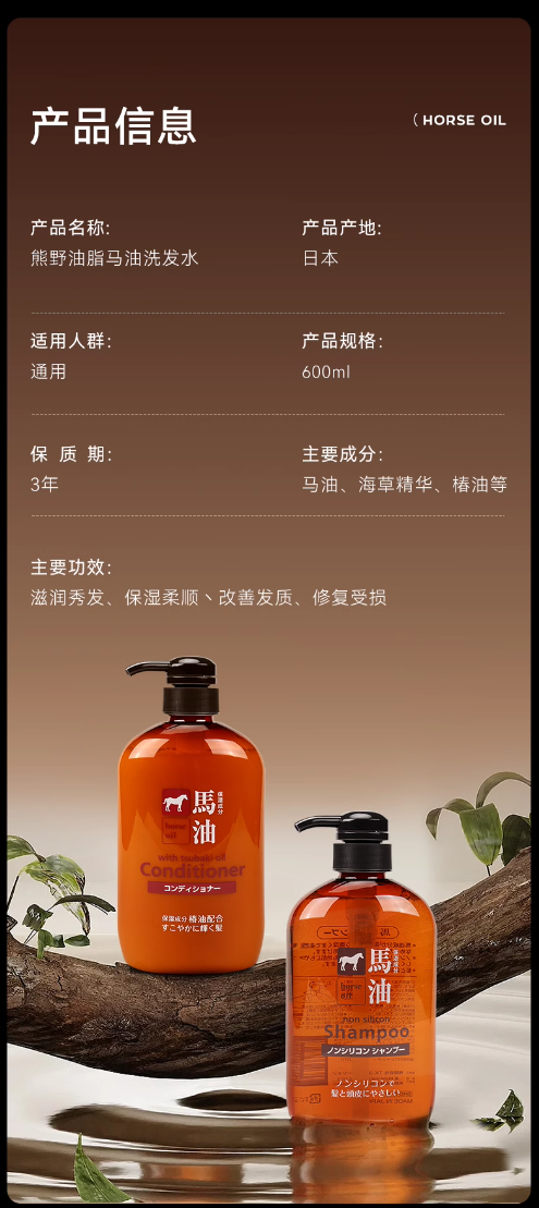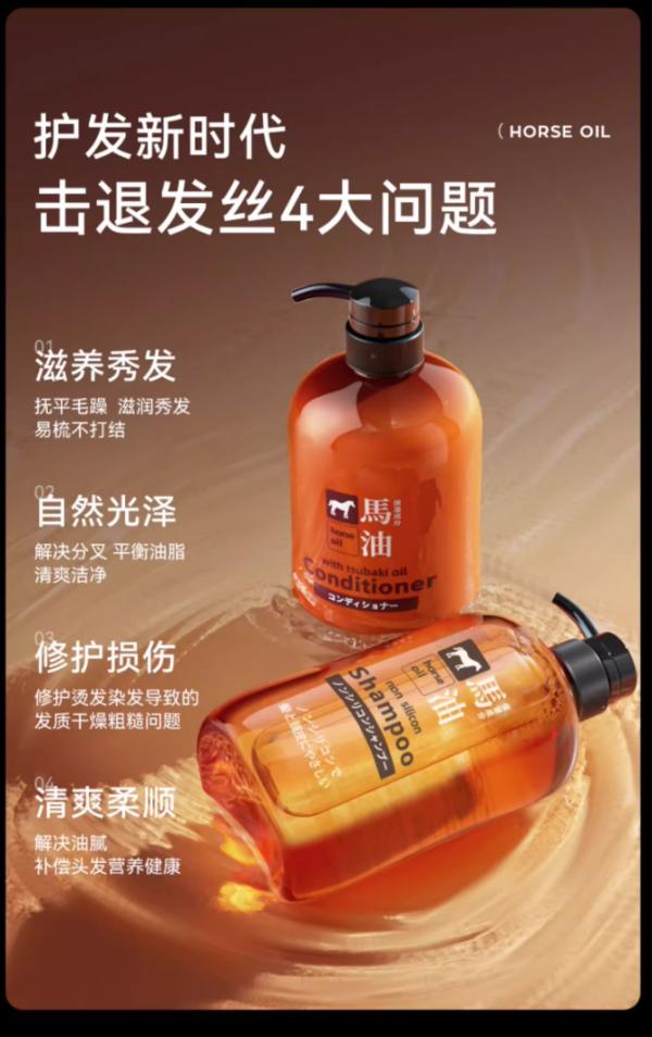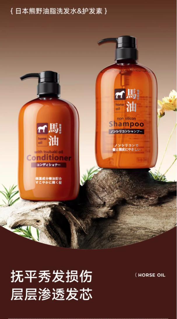 日本熊野油脂无硅油马油洗发水护发素600ML*2