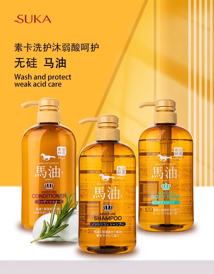 日本SUKA素卡马油洗发水+护发素600ML*2瓶