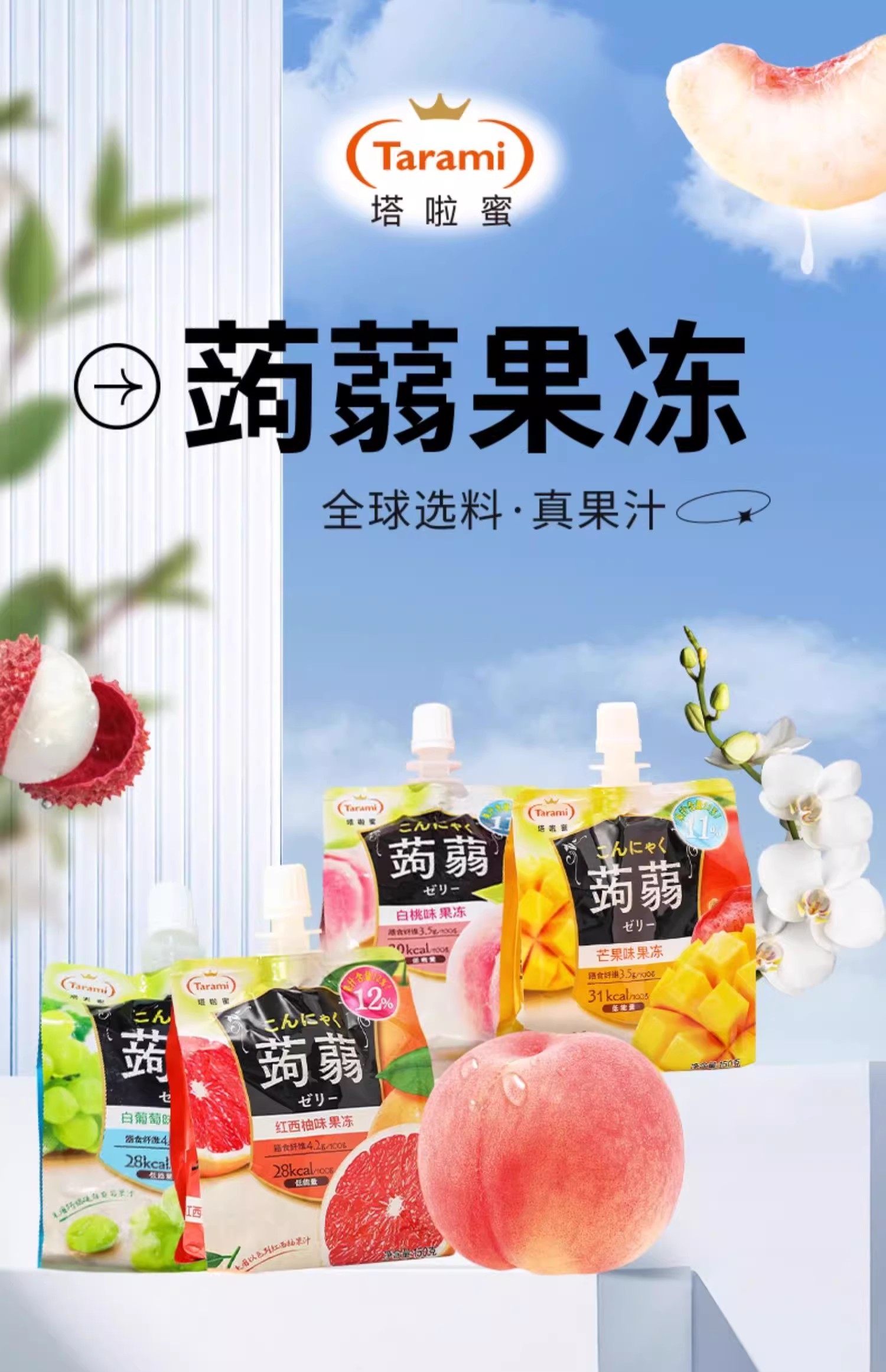【30袋装】Tarami塔啦蜜国产低卡蒟蒻魔芋水果味果冻零食150g/袋(口味随机))